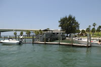We are located at 920 John Ringling Causeway. Take US 41 to Gulfstream Boulevard near downtown Sarasota. Turn West at the traffic light and head toward the beaches. Make sure you get in the far right lane. The next traffic light is Sunset Drive. Immediately after the traffic light at Sunset Drive and Gulfstream Boulevard watch for our access road that veers to the right. Take that access road alongside the bridge approach and follow it underneath the John Ringling Causeway and up the other side. Hart’s Landing is on the right and parking is on the left. If you go over the bridge you missed the access road!